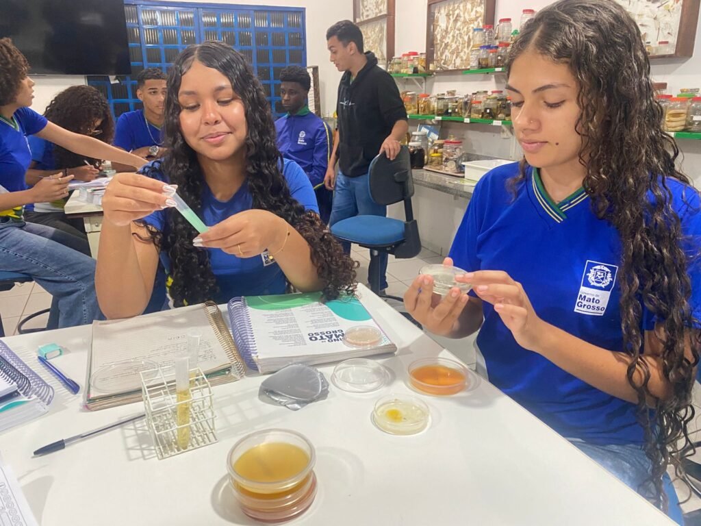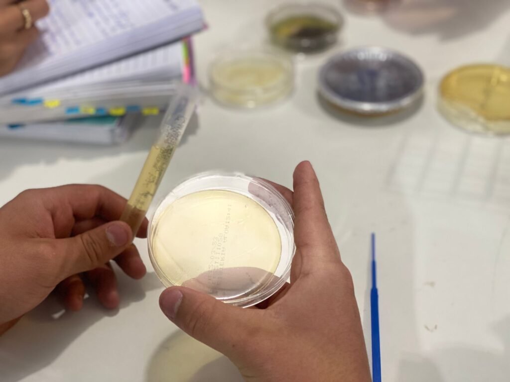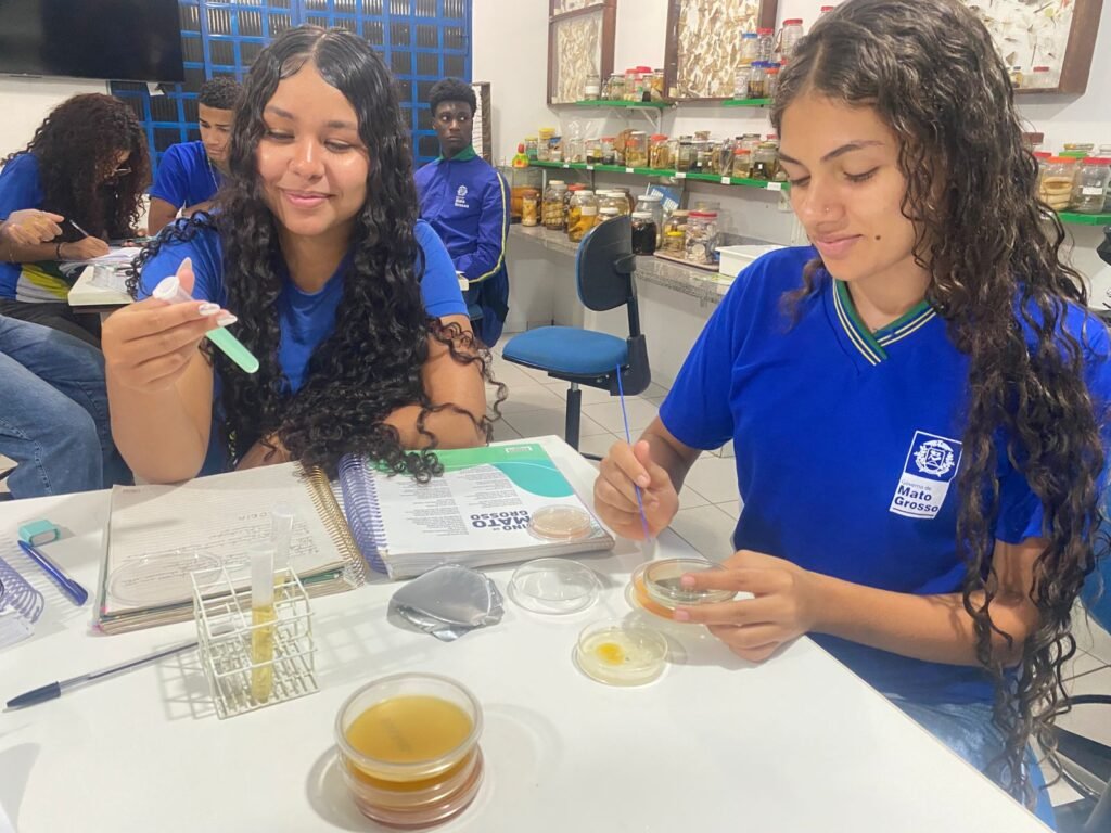 Durante a aula, os alunos tiveram a oportunidade de conhecer e aplicar a técnica de inoculação, um procedimento essencial na microbiologia que permite o cultivo de microrganismos em meios adequados. Sob orientação da professora, os estudantes aprenderam sobre os cuidados necessários com a assepsia, o uso correto dos materiais laboratoriais e a importância da precisão nos procedimentos científicos.