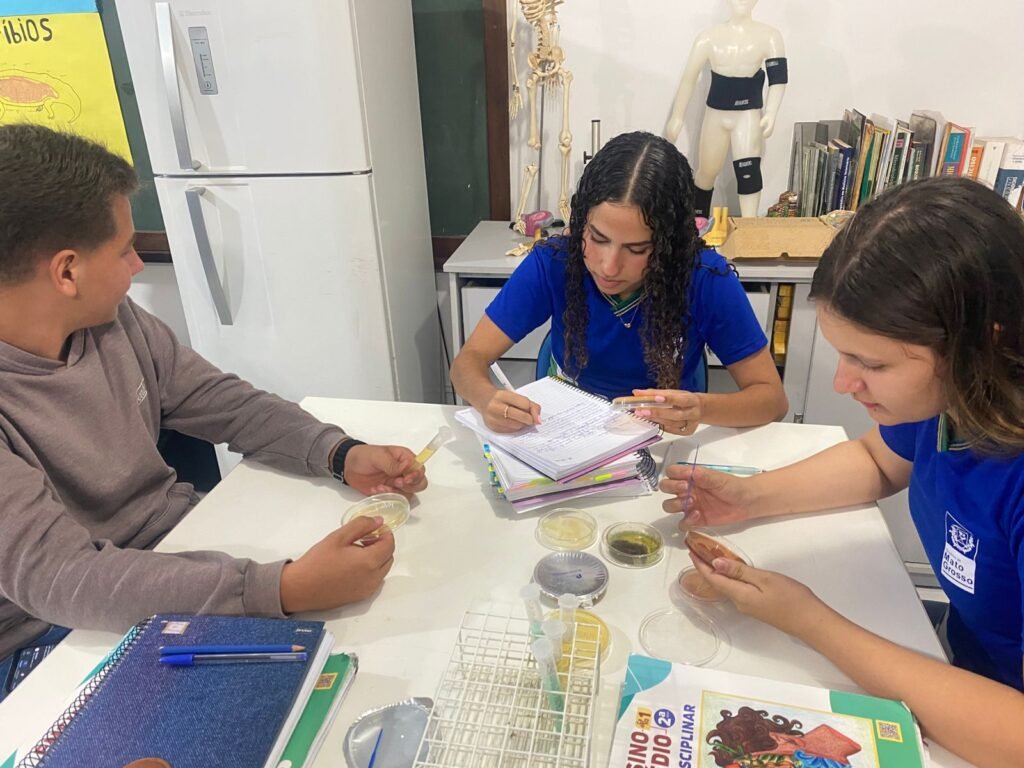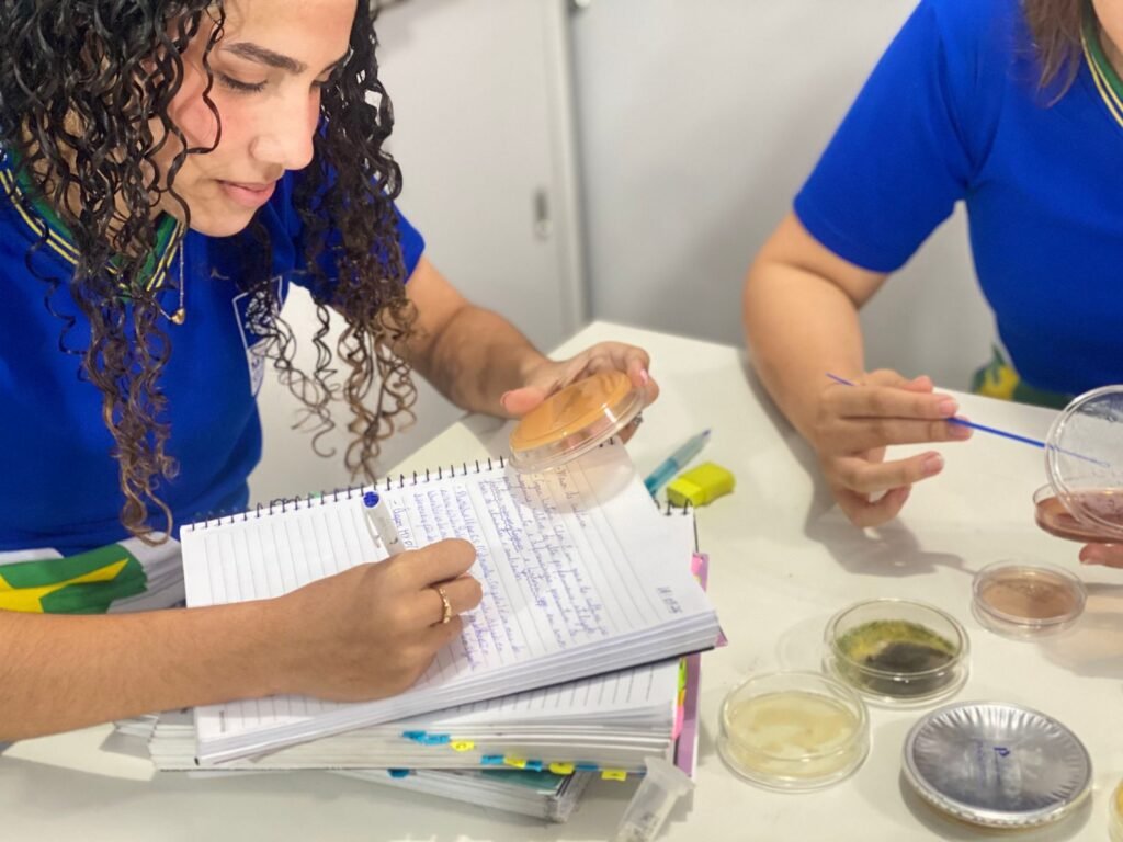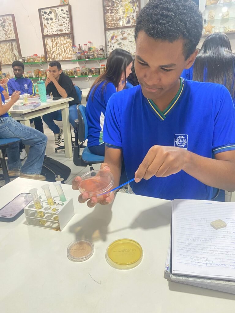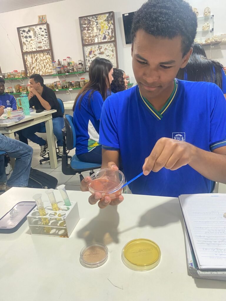 Além da prática de inoculação, os alunos também foram introduzidos ao processo de reconhecimento de microrganismos, observando características básicas das bactérias, principais representantes do Reino Monera. A atividade despertou a curiosidade científica, estimulando a observação, o pensamento crítico e a compreensão da presença desses seres em diferentes ambientes, inclusive no cotidiano.