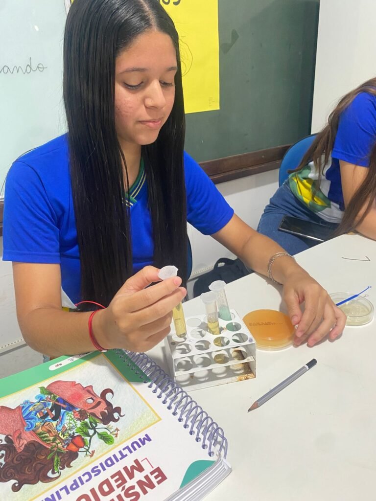 A aula prática destacou a importância do laboratório como espaço de construção do conhecimento, permitindo que a teoria trabalhada em sala fosse vivenciada de forma dinâmica e interativa. Experiências como essa contribuem significativamente para o desenvolvimento da autonomia dos alunos e para o fortalecimento do interesse pelas ciências.